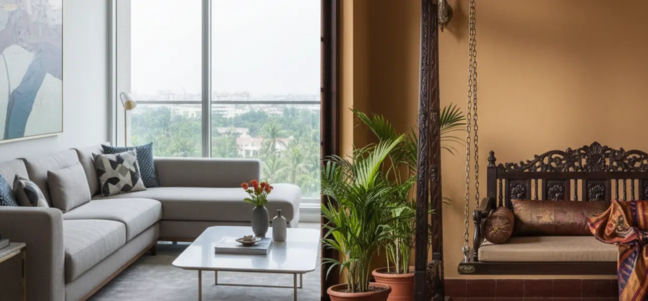 • Cultural blend: Families want puja rooms, traditional seating, and wooden elements blended with modular kitchens and modern living rooms.